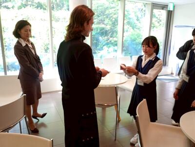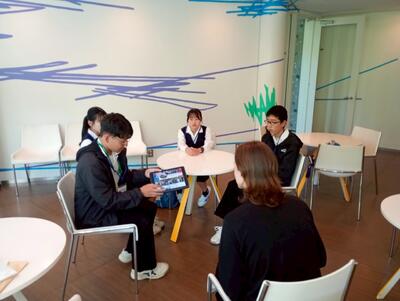 今回の企業訪問ではフランス大使館を訪問し、フランス交流の様子や自作の三朝町をPRする動画を紹介しました。