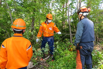 現場に出向き、森林の間伐を行いました。
