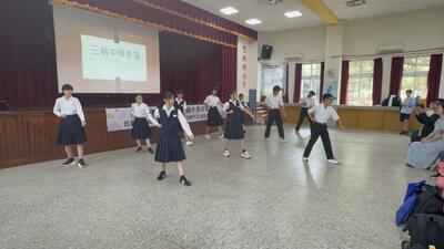 石岡中学校でバレーをしたり調理実習をしています。