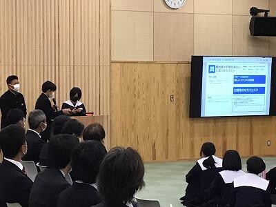 本校の3年生が総合的な学習の時間を使い、三朝町役場の各課の課長様をお招きし、三朝町の現状、課題や原因について話し合い、様々なアイデアを考え発表しました。様々な税制度や三朝町の税収入も学習し、三朝町をよりよくし自分たちの未来へ繋げる学習を行いました。