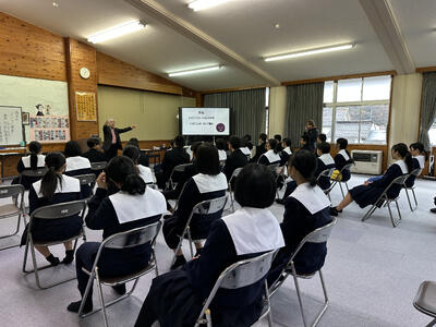2年生を対象に喫煙防止教室が行われました。発がん性のお話や実際の喫煙後の肺の様子なども見て、学習しました。