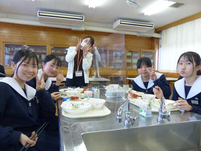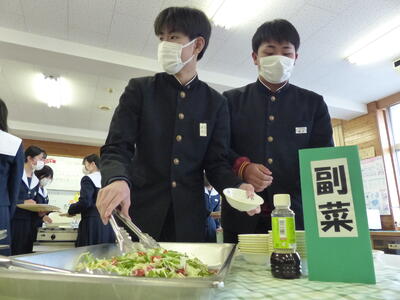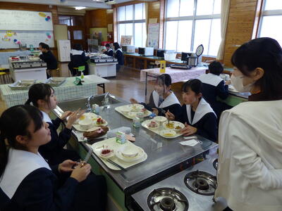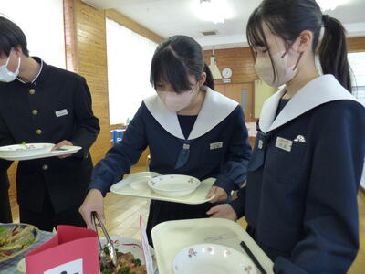 中学校生活で給食を食べれる日数も残りわずかになり、生徒にとってはバイキング形式の給食という体験に笑顔があふれ全ての料理を完食していました。今年の干支である馬の紙細工もプレゼントしていただき、特別な一日になりました。いつも美味しい給食をありがとうございます。