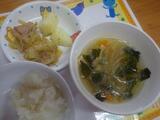 チキンアドボは、鶏肉をお酢としょうゆ、黒糖などで煮込んだ料理です。今日は調理センターでじっくりと煮込んで焼きました。そして、ティノラは、鶏肉のスープのことです。しょうがを効かせたあっさりとした味が特徴です。フィリピンでは、家でよく食べられていて、体調を整えたいときにも食べるそうです。しょうがが入ることで、体がぽかぽかしますね。