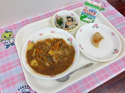 献立のテーマは、「ピカイチ ~おいしさいちばんぼし給食~」です。2年B組の学級目標は「ピカイチ ~思いやりいちばんぼし~」です。話の聞き方や、あいさつなど、1年生のお手本となる輝く姿を目指して毎日頑張っています。今回の献立では、そんな輝く姿をイメージして、星形のメニューをたくさんリクエストしました。スープにあるラッキーな「いちばんぼし」を探してみてください。